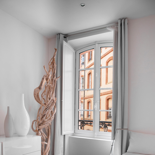 • Type «mouton et gueule de loup» • Véritable crémone à l’ancienne • Espagnolette en option • Ouvrant affleurant • Volet Interne option