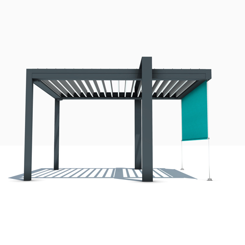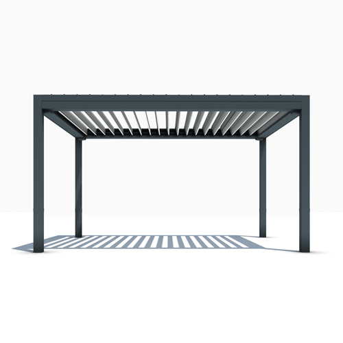 La pergola haute couture au design épuré. Structure alu thermolaquée sans vis apparentes abritant des lames orientables à 160° et un éclairage LED intégré dernière génération.